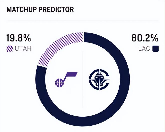 賽前,美媒ESPN對本場比賽進(jìn)行了勝率預(yù)測,爵士隊(duì)勝率僅有19.8% ,快船隊(duì)勝率則高達(dá)80.2%,這差距本賽季此前還從來沒有過。